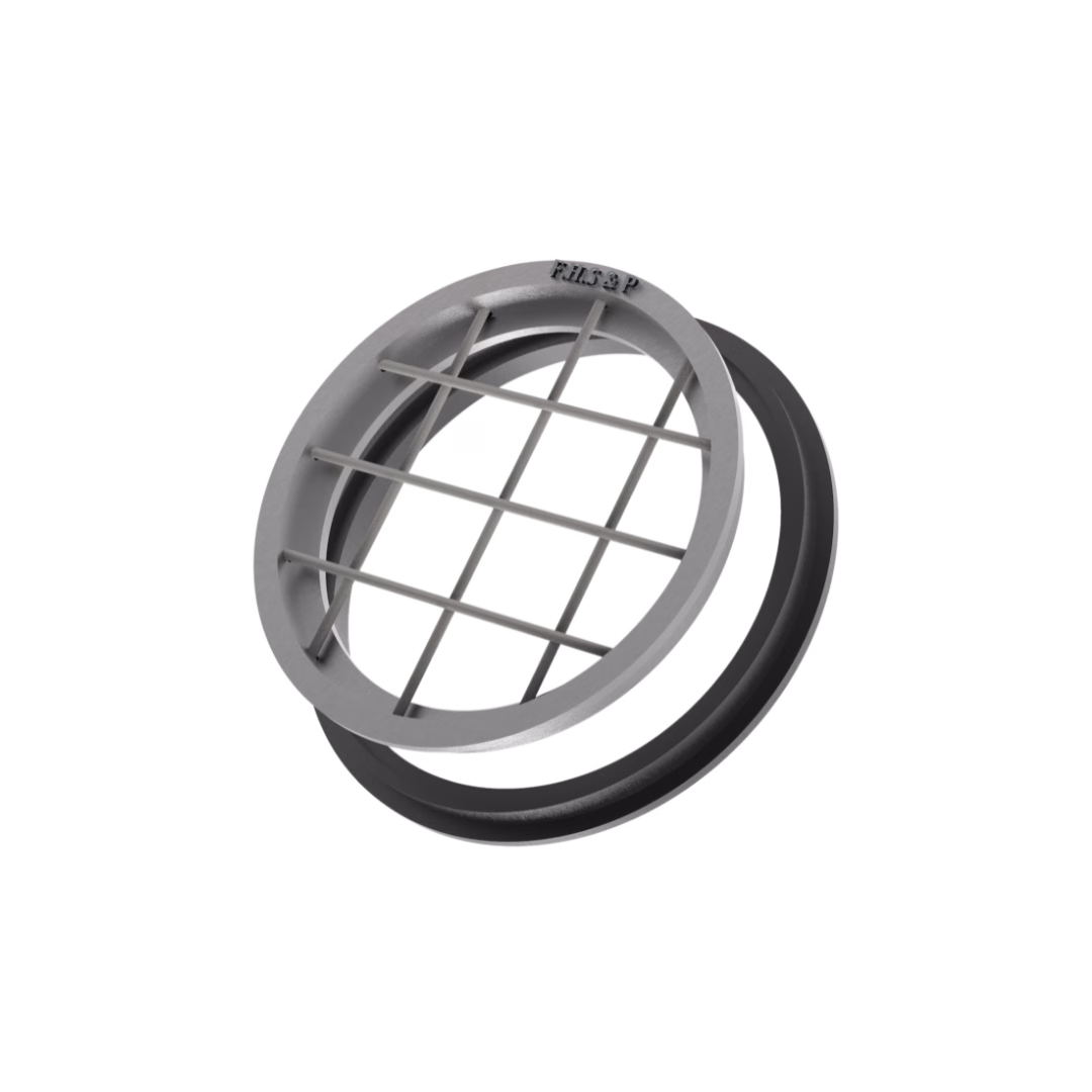 Incorpora una parrilla de varilla corrugada diseñada para soportar cargas intermedias y garantizar un drenaje eficaz. Sus dimensiones, con un diámetro externo de 69 cm y un diámetro interno de 59 cm, junto con una altura de 55 mm, permiten una instalación estable y nivelada con la superficie.